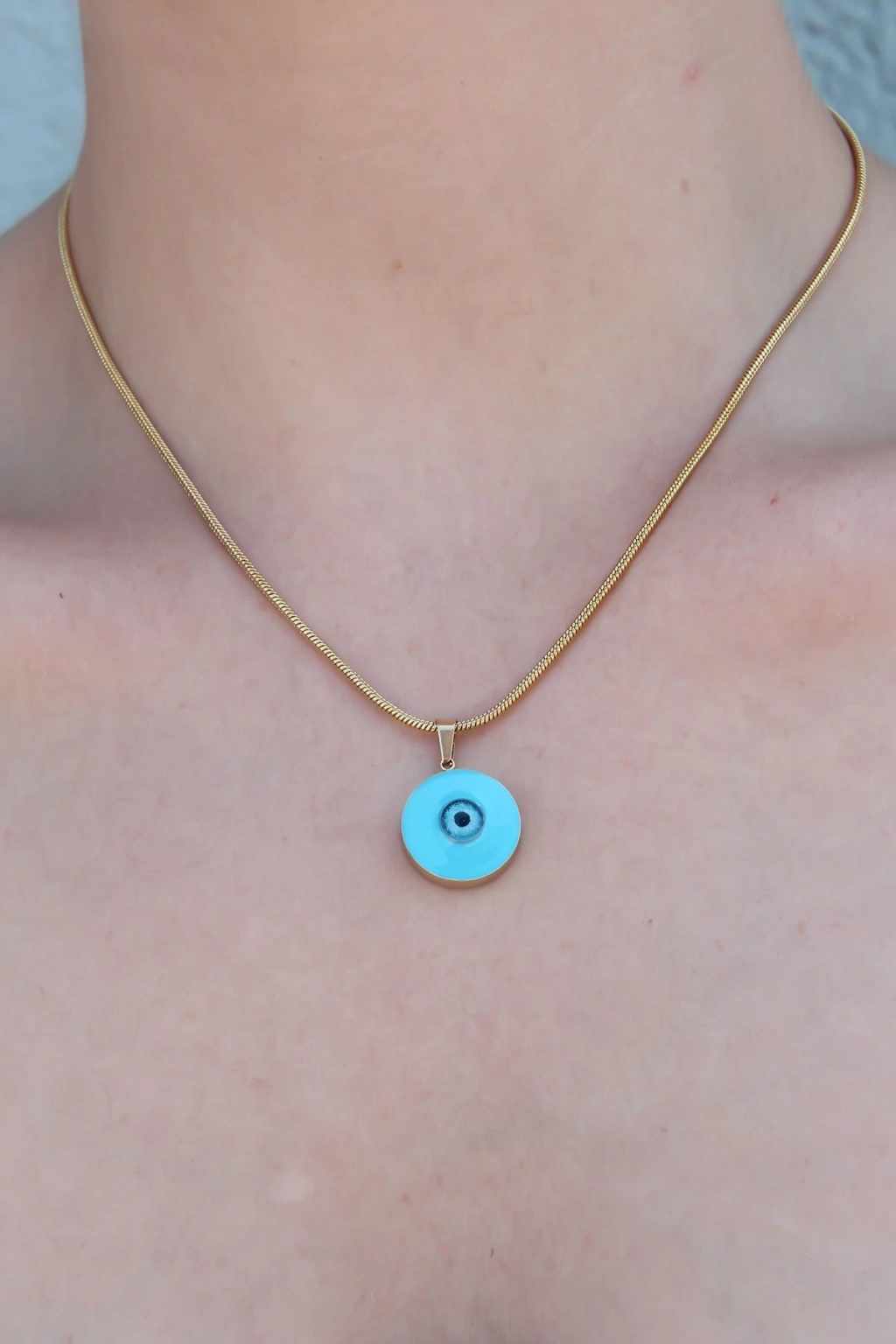 316L Çelik Gold Renk Nazar Boncuk Model Kadın Kolye
