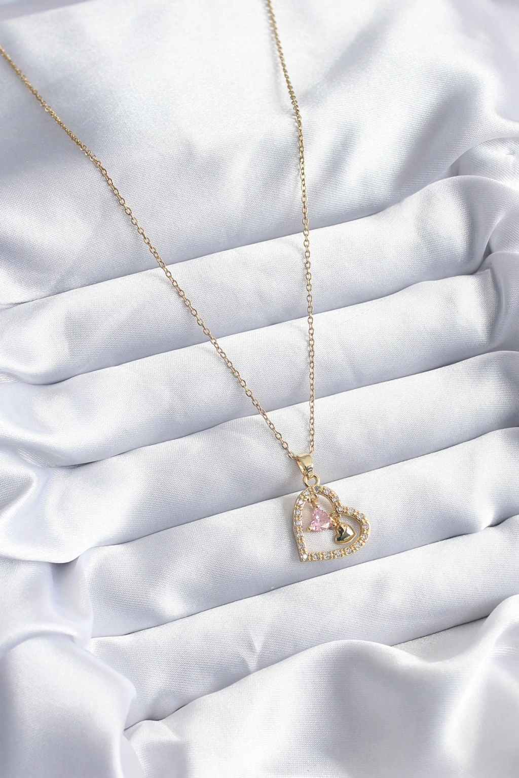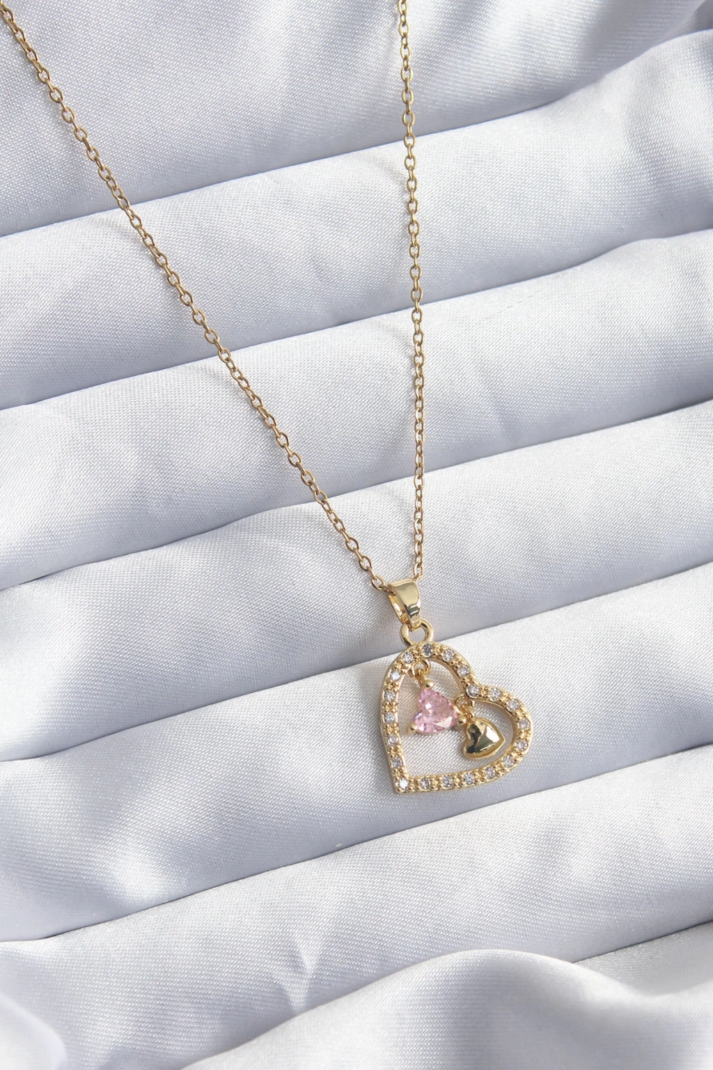 316L Çelik Gold Renk Zincir Zirkon Taşlı Kalp Model Kadın Kolye