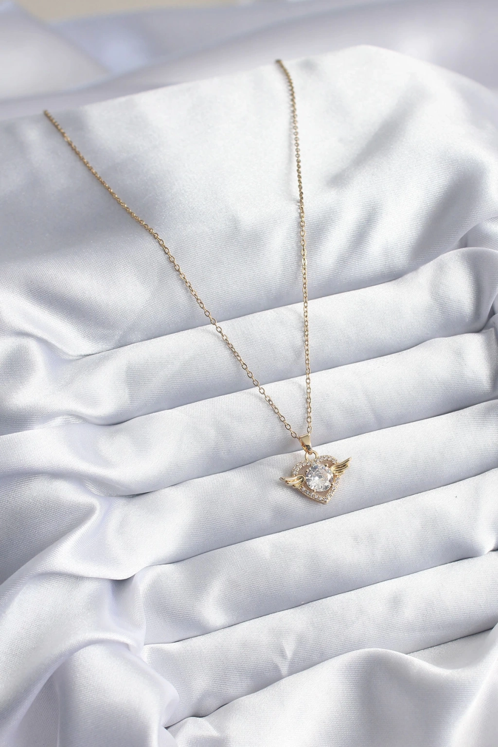 316L Çelik Gold Renk Zincir Zirkon Taşlı Kalp Model Kadın Kolye