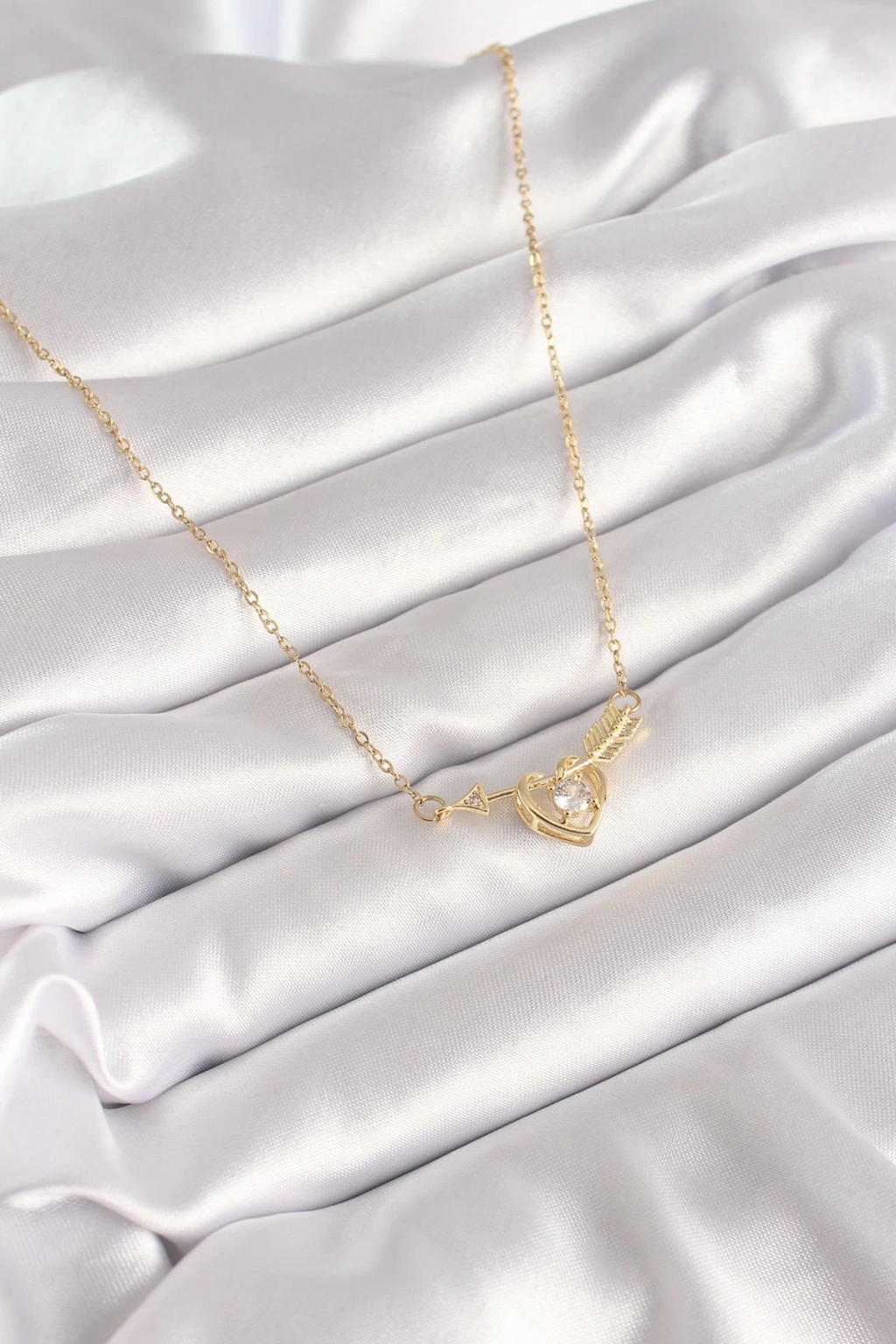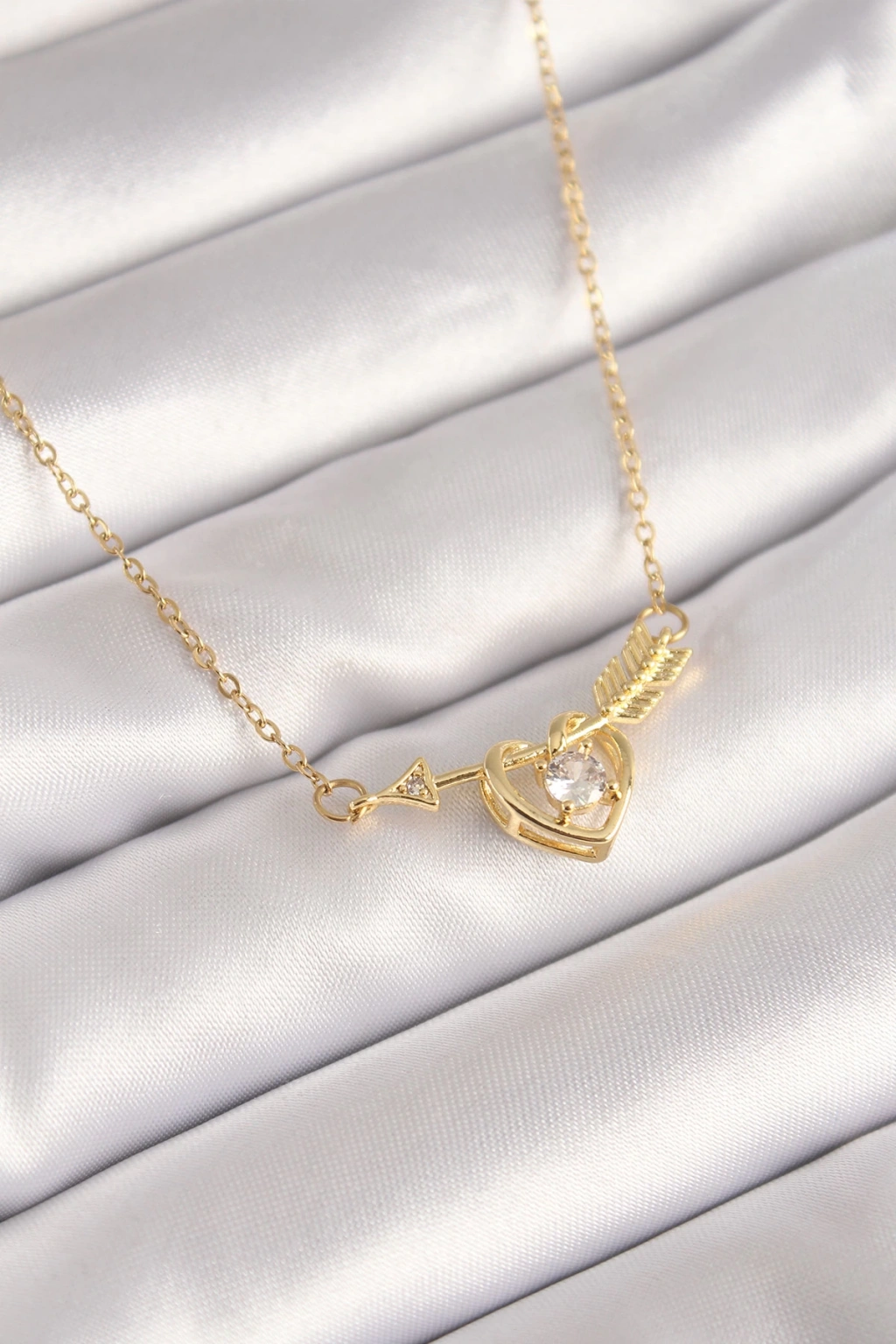 316L Çelik Gold Renk Zincir Zirkon Taşlı Ok Kalp Model Kadın Kolye