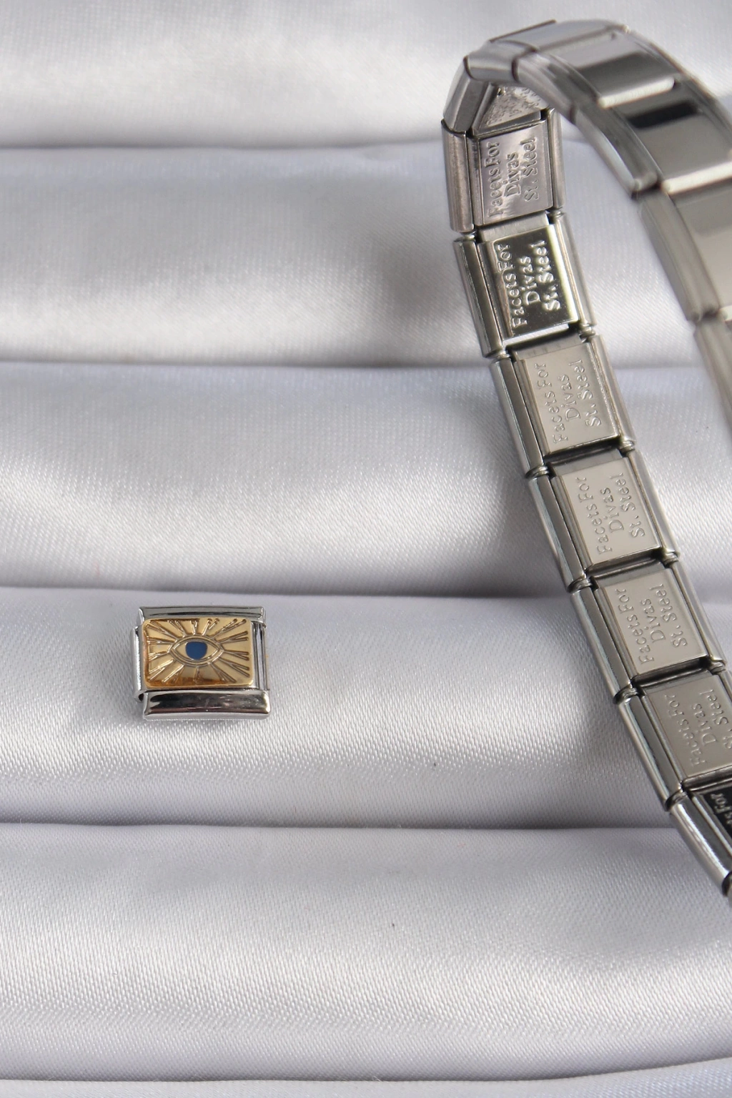 316L Çelik Gümüş Renk Altın Göz İşlemeli Nomination Charm