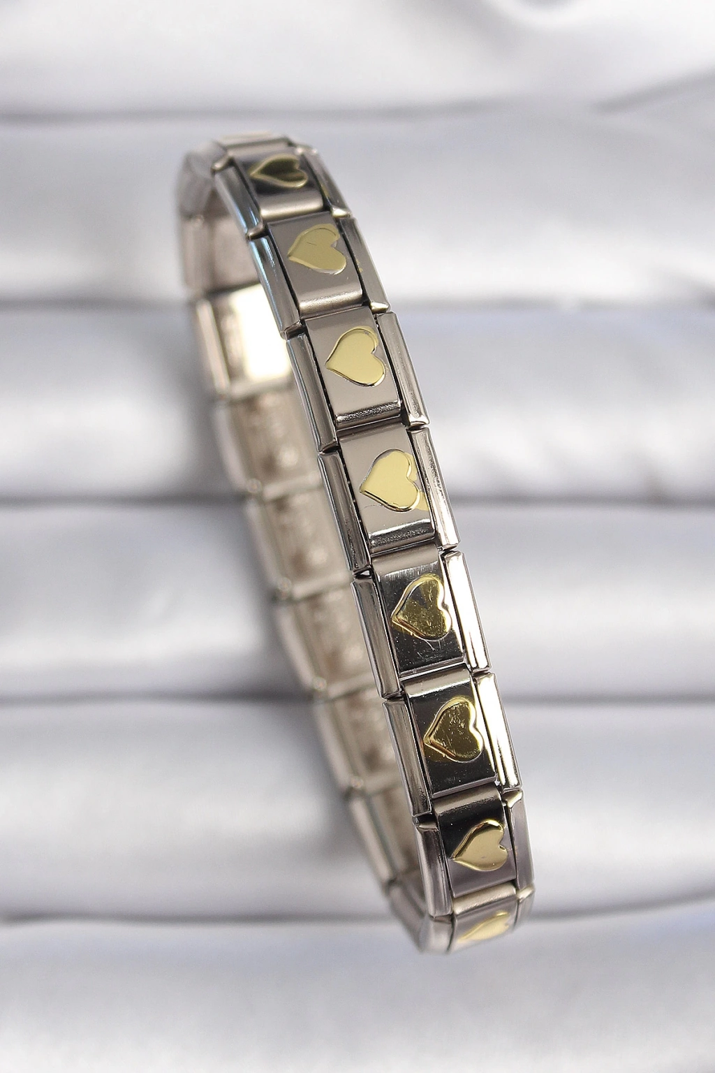 316L Çelik Gümüş Renk Gold Kalp İşleme Nomination Charm Bileklik