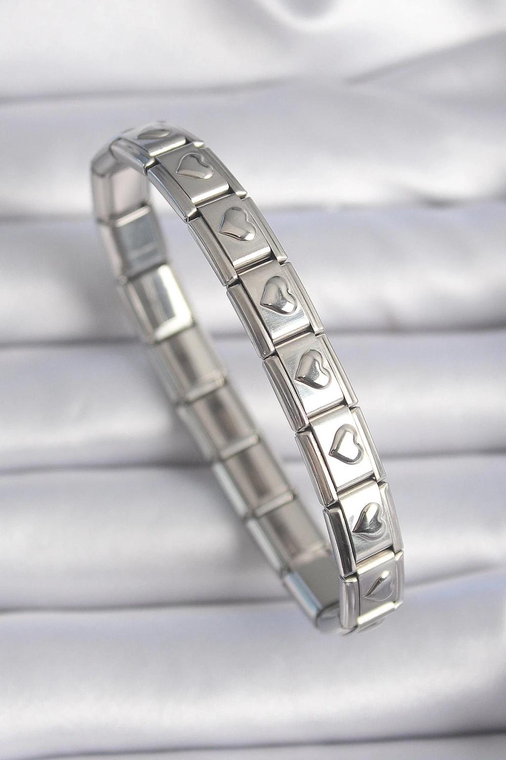 316L Çelik Gümüş Renk Kalp İşleme Nomination Charm Bileklik