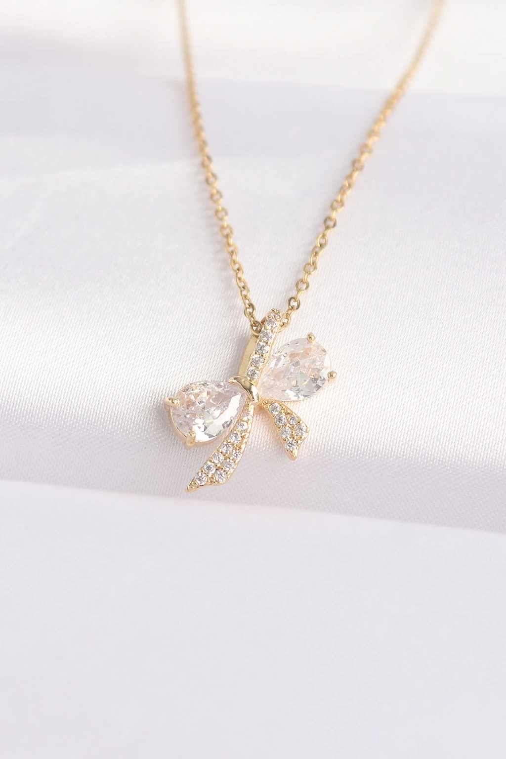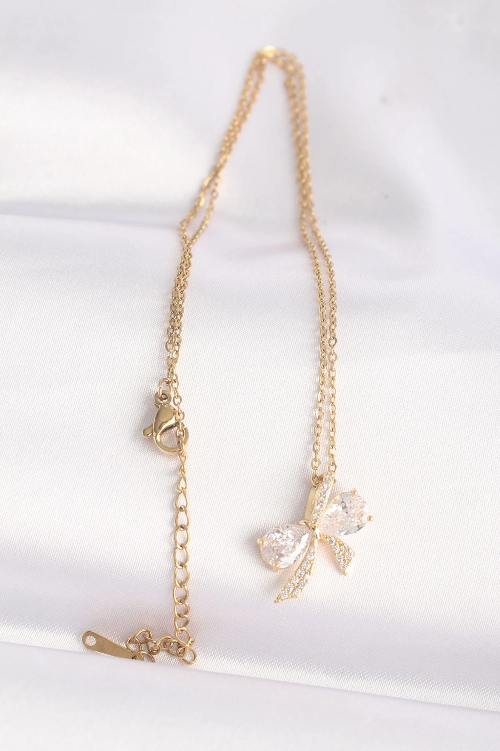 316L Çelik Zincir Altın Renk Zirkon Taşlı Fiyonk Kolye