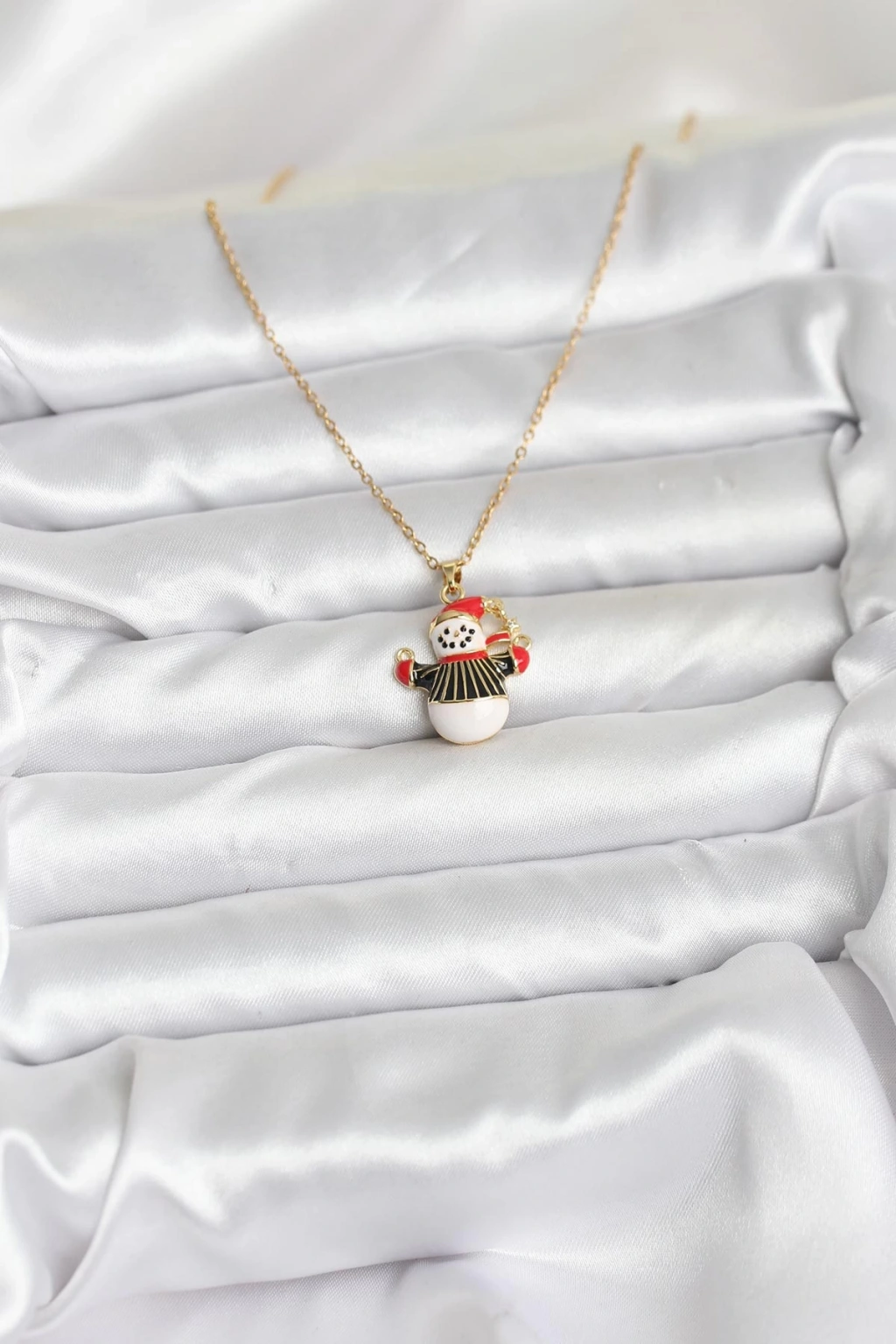 • 316L Çelik Zincir Gold Renk Kardan Adam Figürlü Yılbaşı Temalı Kadın Kolye