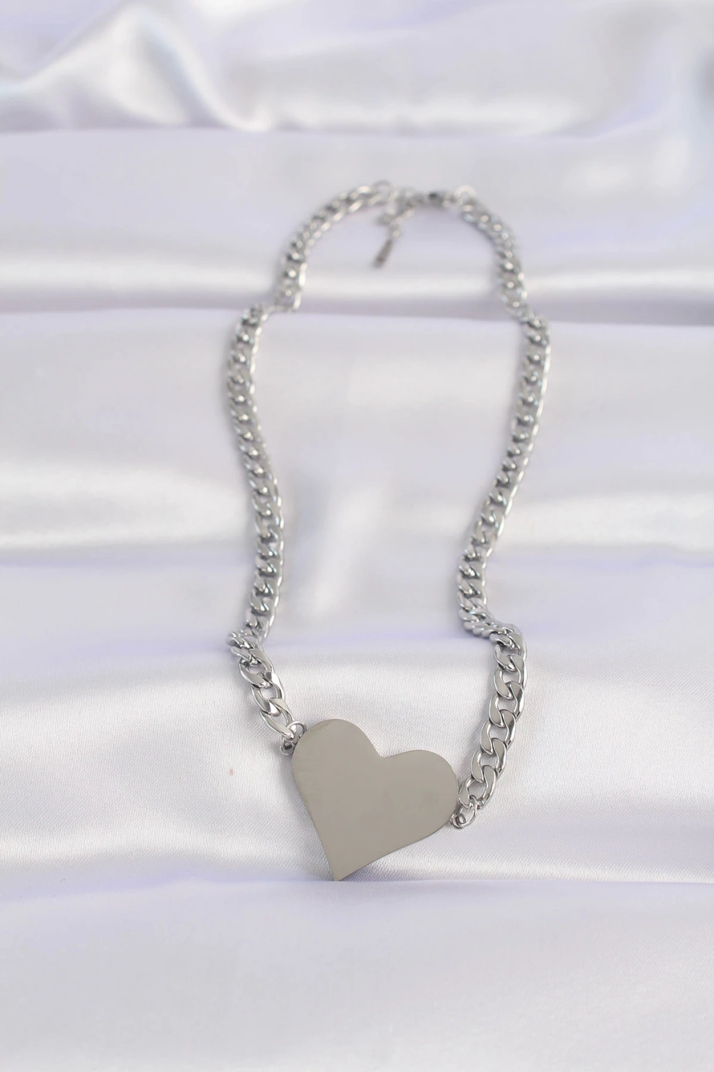 316L Çelik Zincir Gümüş Renk Düz Plaka Kalp Kolye