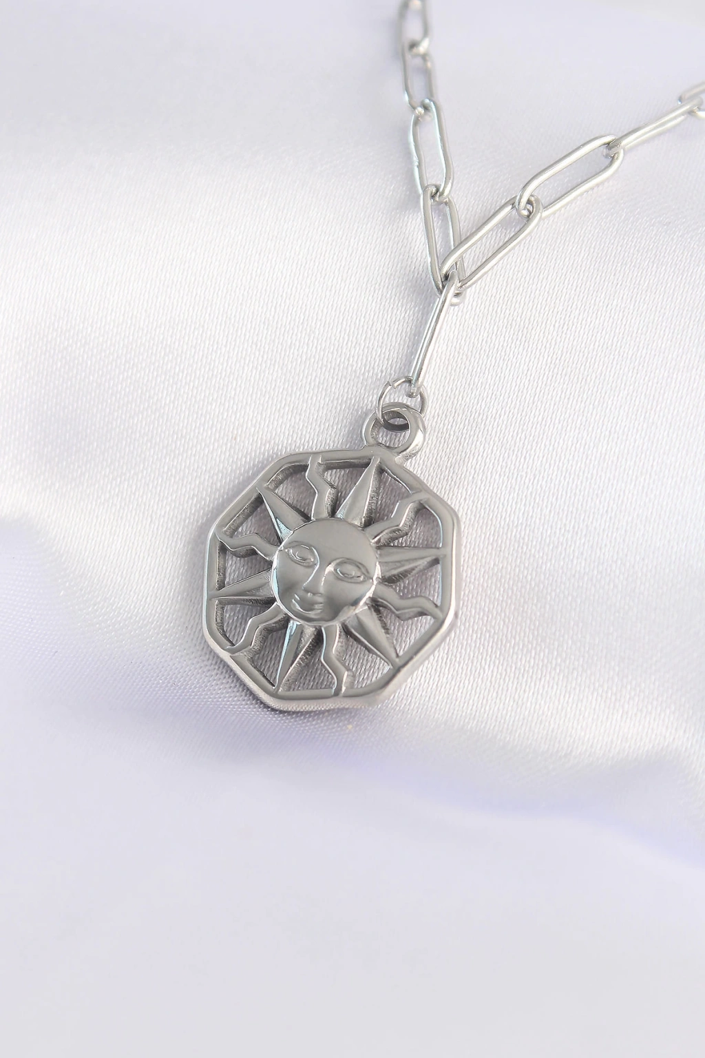 316L Çelik Zincir Gümüş Renk Güneş Kolye