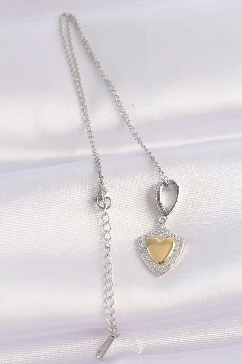 316L Çelik Zincir Gümüş Renk Zirkon Taşlı Tasarım Altın Renk Kalp Kolye