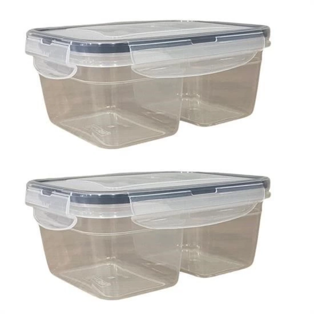 Adshome® 2 Bölmeli 0,45+0,45 Litre Kilitli Kapaklı Erzak Saklama Kabı Diyet Saklama Kabı Taşınabilir Beslenme Kabı