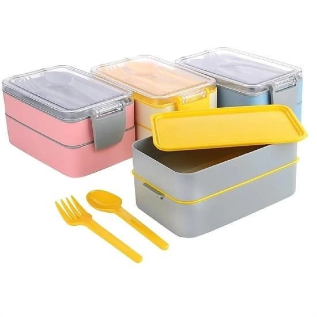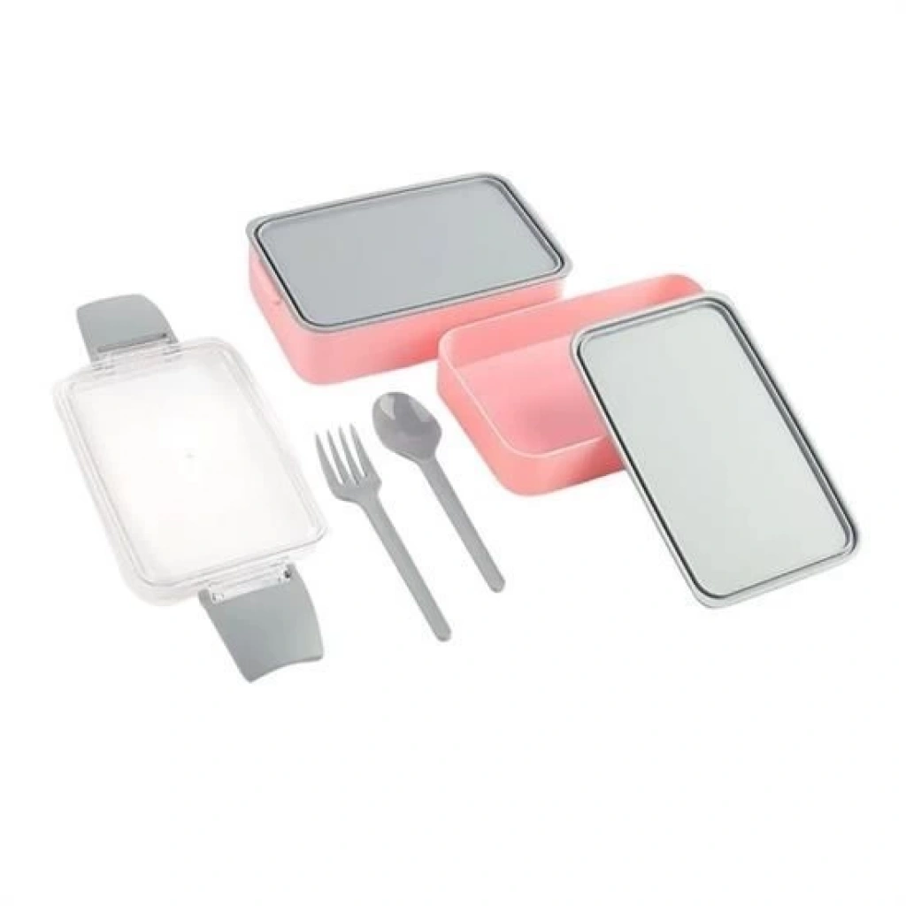 Adshome® 2 Bölmeli Çok Amaçlı 900 ml Kapasiteli Çatal Kaşıklı Dayanıklı Beslenme Kabı Yiyecek Kutusu