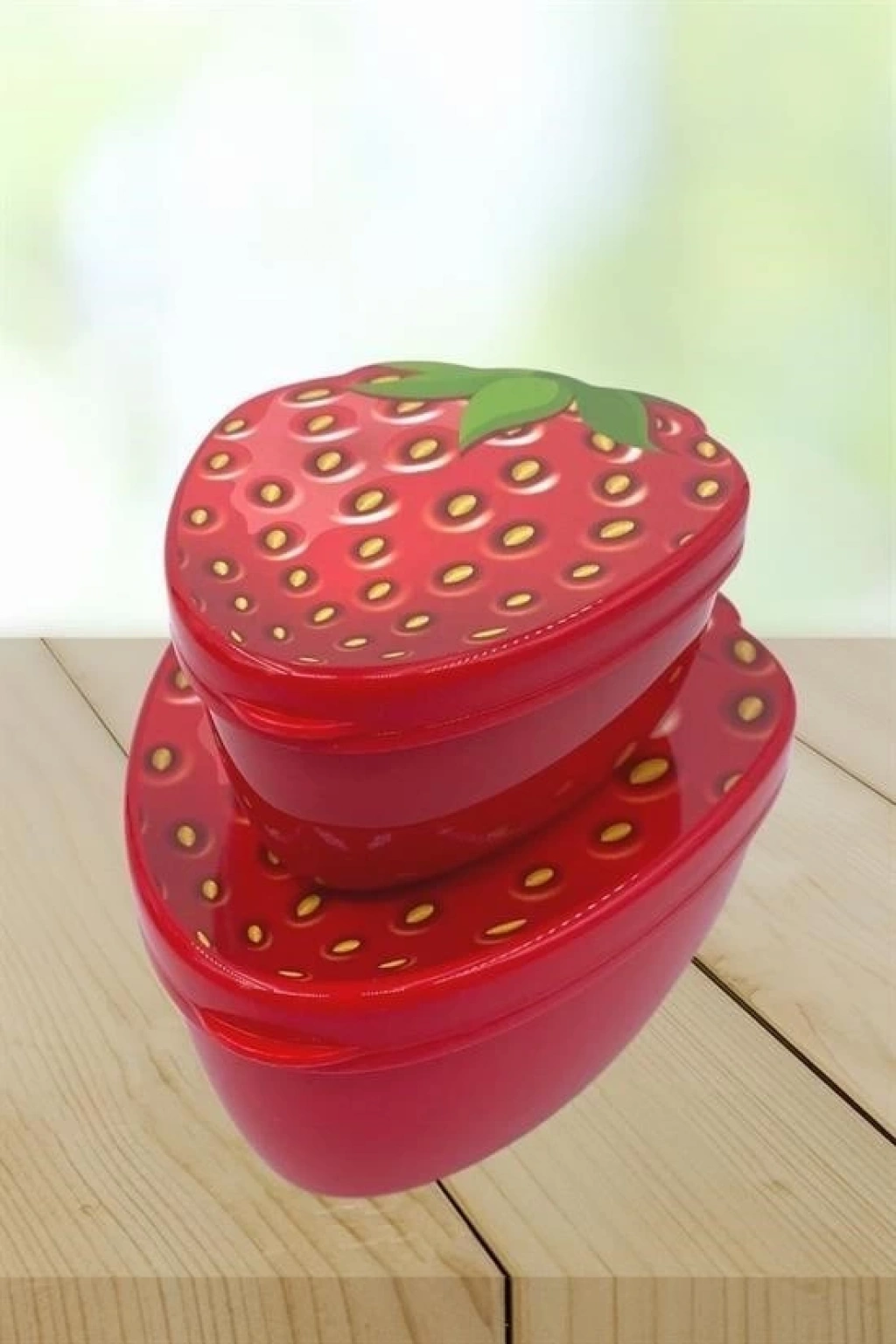 Adshome® 2'li İç İçe Geçebilen Çilek Model Saklama ve Beslenme Kabı Seti (550 ml + 250 ml)