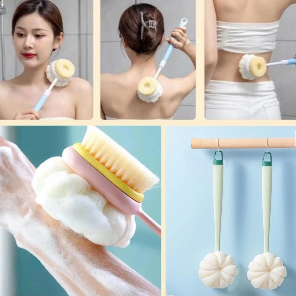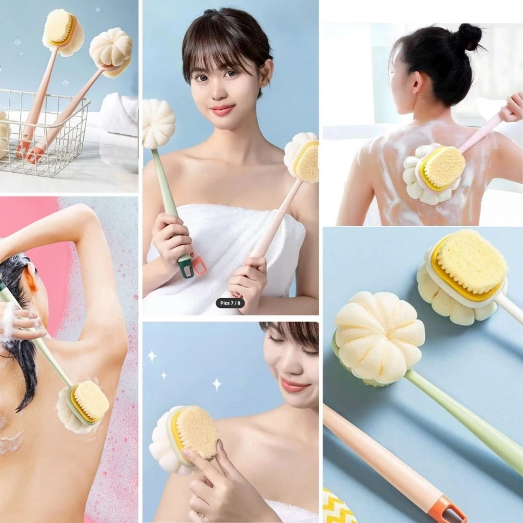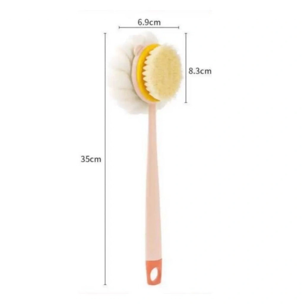 Adshome® 2’si 1 Arada Çift Taraflı Uzun Saplı Fırçalı Banyo Vücut Fırçası & Banyo Lifi