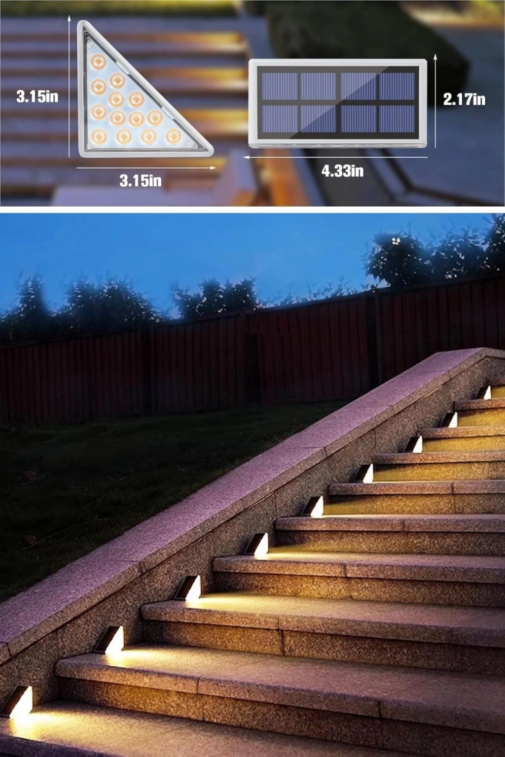 8 Adet Üçgen Güneş Enerjisi ile Şarj Olan Solar Basamak Köşe Lambası, hem fonksiyonel hem de estetik bir dış mekan aydınlatma çözümüdür. Modern tasarımı ve çevre dostu yapısıyla mekanlarınıza enerji verimli bir ışıltı katmak için hemen tercih edin!