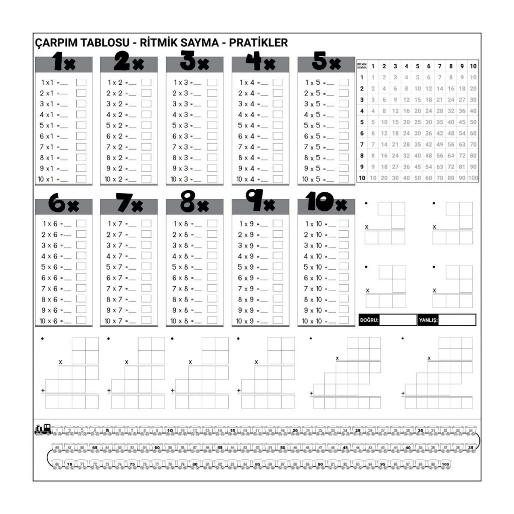 Okula yeni başlayan çocuklarınız için çarpım tablosu alıştırmaları yapabileceğiniz duvara yapıştırılabilir sticker pano