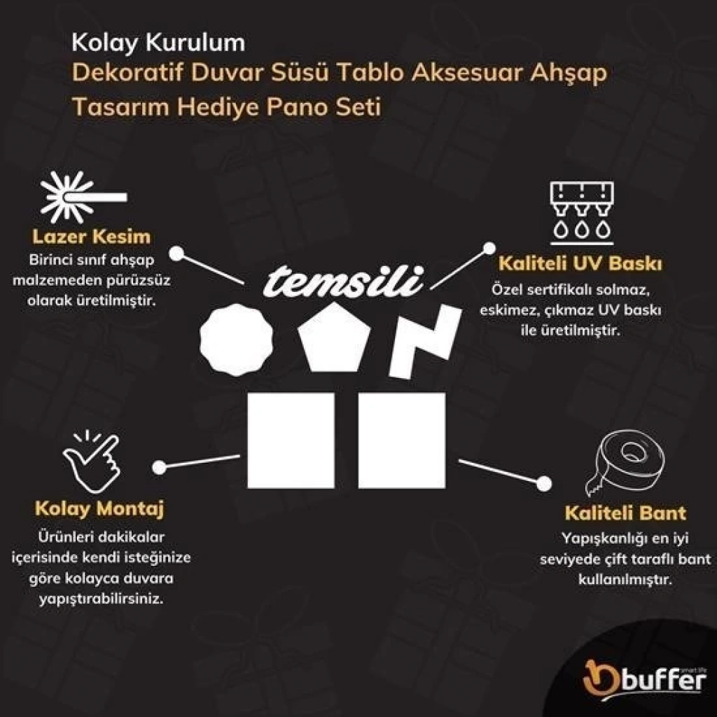 Kullanılan baskı UV baskı teknolojisi ile basılmıştır Diğer ucuz yapıştırmalı ürünlere göre oldukça uzun ömürlüdür Sararma, büzüşme, kavlama gibi durumlar asla söz konusu olmaz