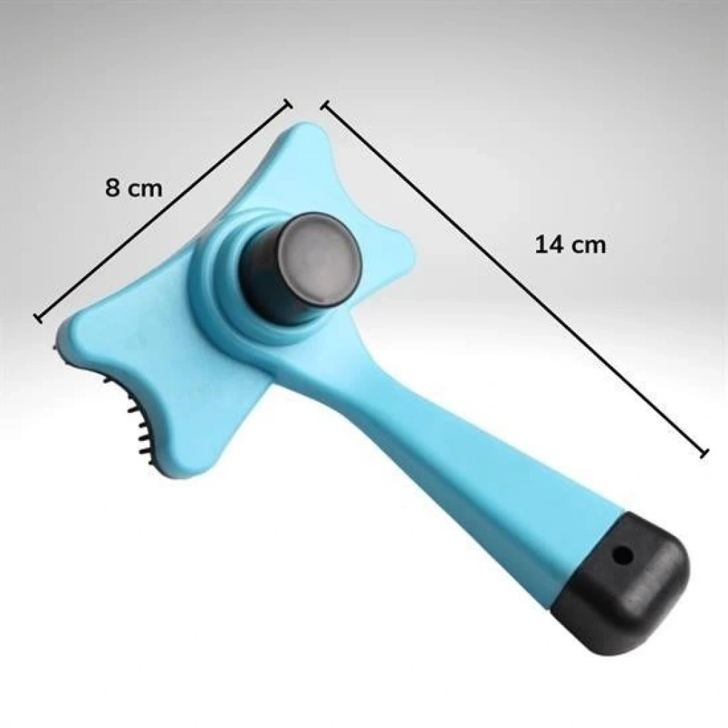 Otomatik temizlenen tuşlu kedi köpek tarama fırçası, köpeklerinizin istenmeyen ve fazla uzamış tüylerini taradıktan sonra rahat ve kolay bir biçimde sıyırmaya yarayan bir alettir Üstte bulunan tuşa bastığınızda telli kısımlarının çıktığı bir tarak olan bu alet, ev hayvanlarınızın karışan tüylerini kolaylıkla açabilmektedir Bununla birlikte tellerin mekanizmanın içine geri girmesiyle, taranılan tüylerden dökülenler de kolayca çöpe atılabilmektedir