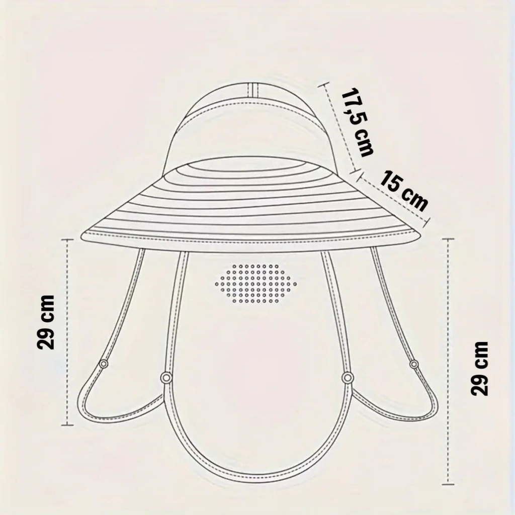 Adshome® Güneş Koruyuculu Nefes Alabilen Maskeli ve Boyun Kapaklı Geniş Kenarlı Balıkçı Şapkası