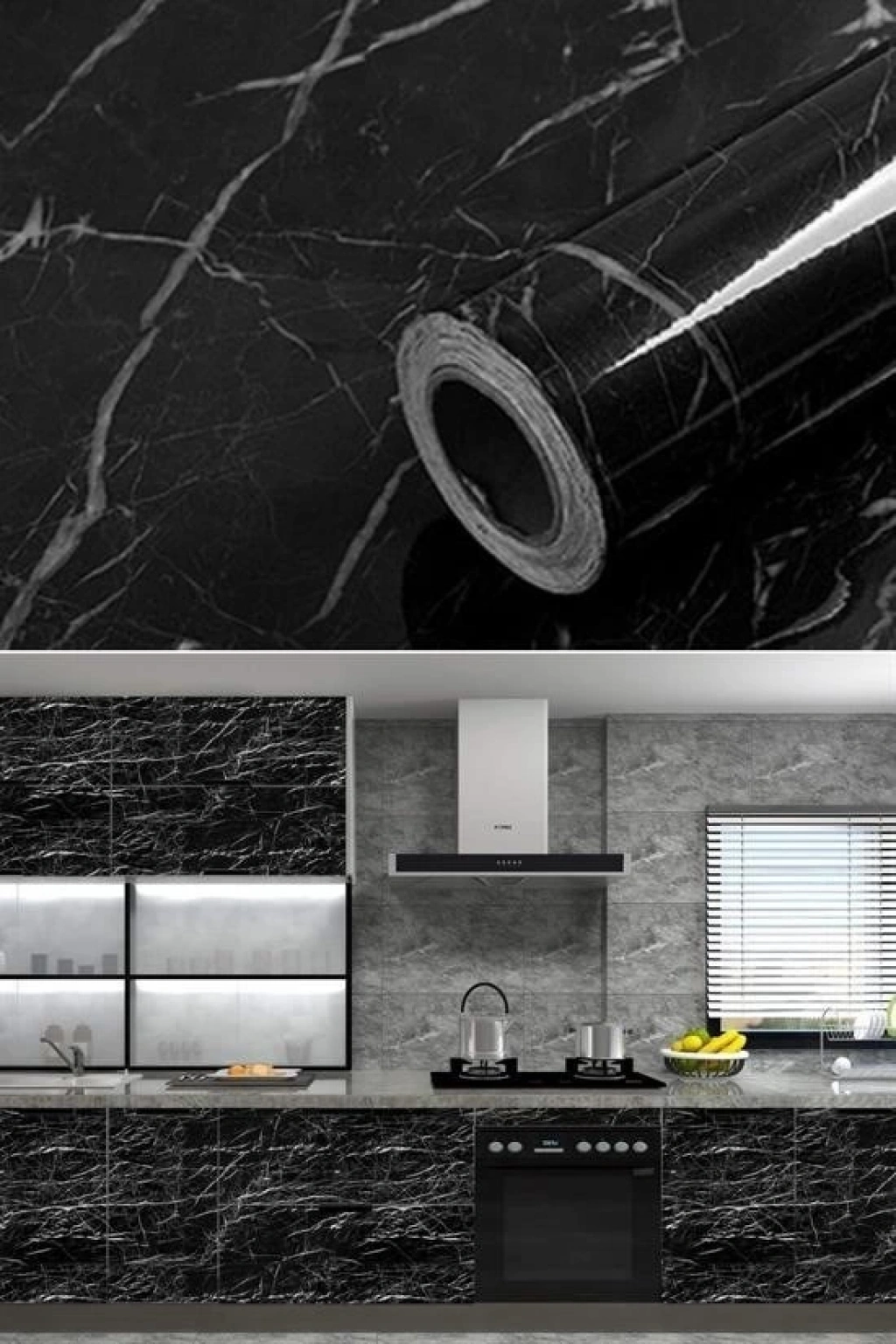 Mermer görünümlü folyoyu dilediğiniz yere kolayca yapıştırabilir ve sonrasında leke olmadan ürünü çıkarabilrsiniz