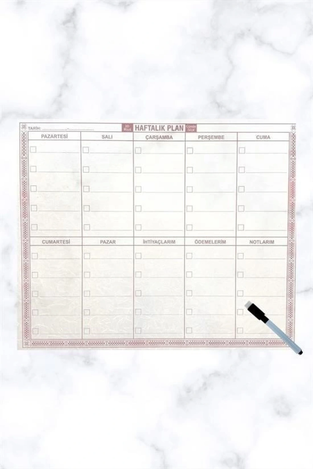 Adshome® Şeffaf Kendiliğinden Yapışkanlı Kalemli Haftalık Planlayıcı 40cm-50cm