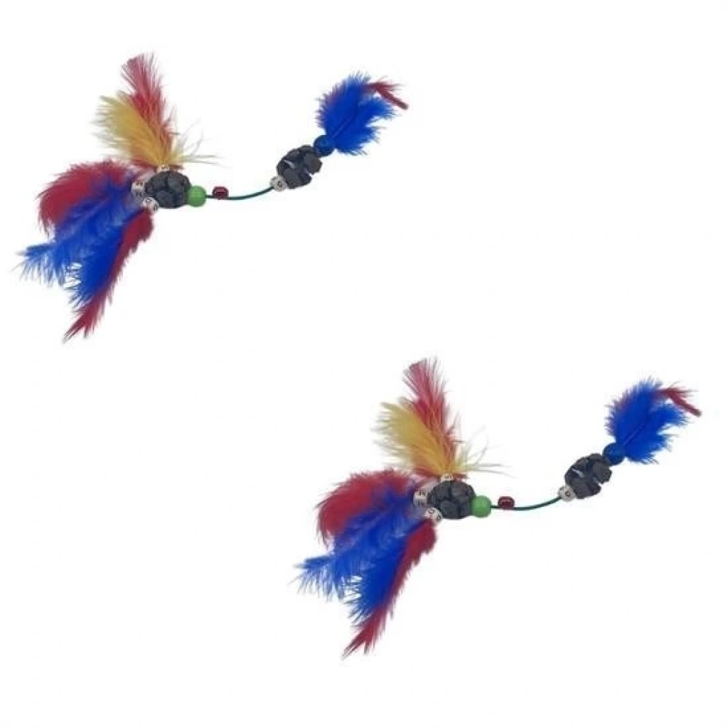 Bu kedi oyuncağı renkli tüyler tahta bir top ve bir zilden yapılmıştır Bu renkli ve parlak tüyler kediler için görsel simüle edici ve ses çıkartan zilli top ilgilerini çekmek için harikadır