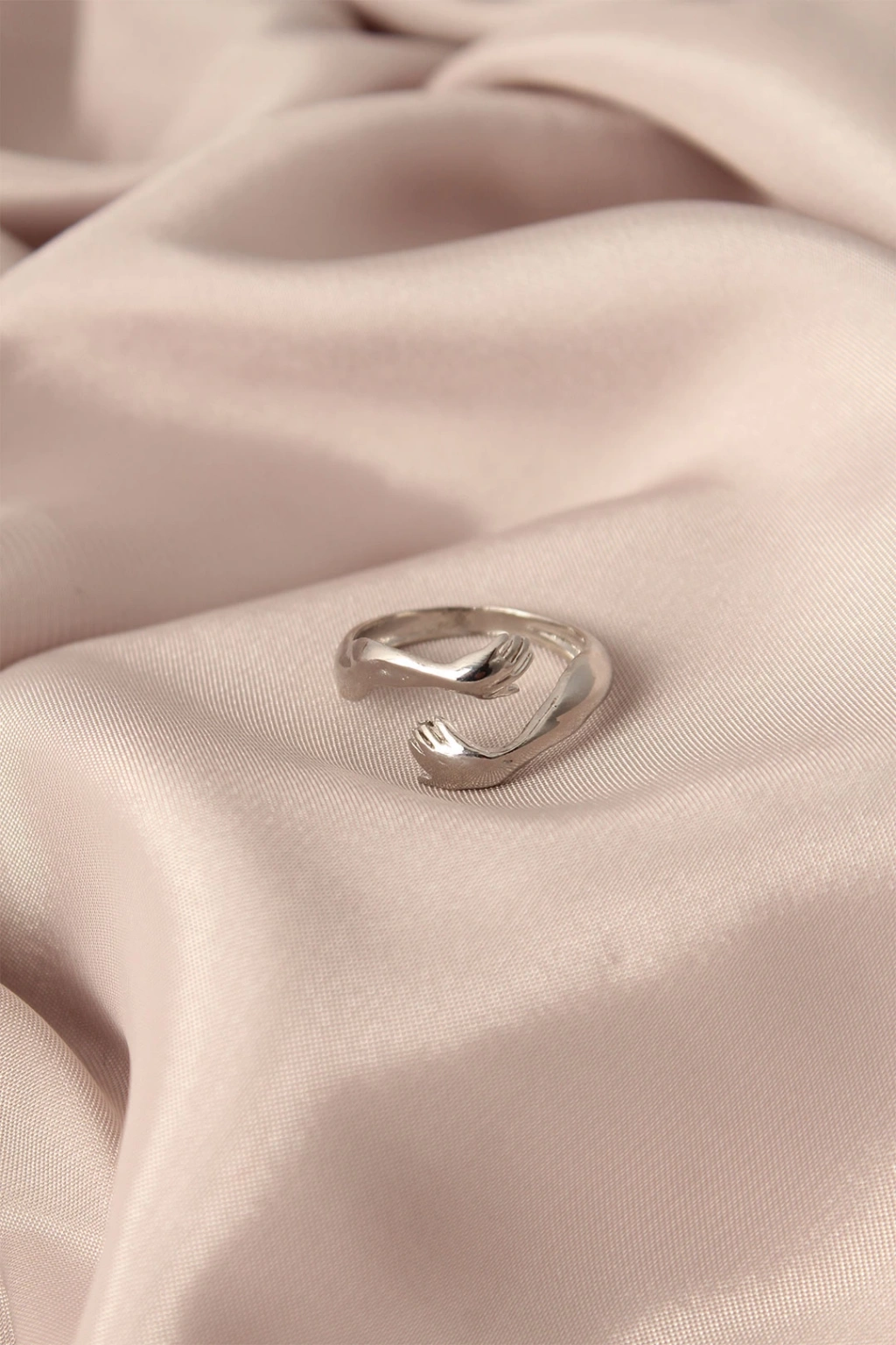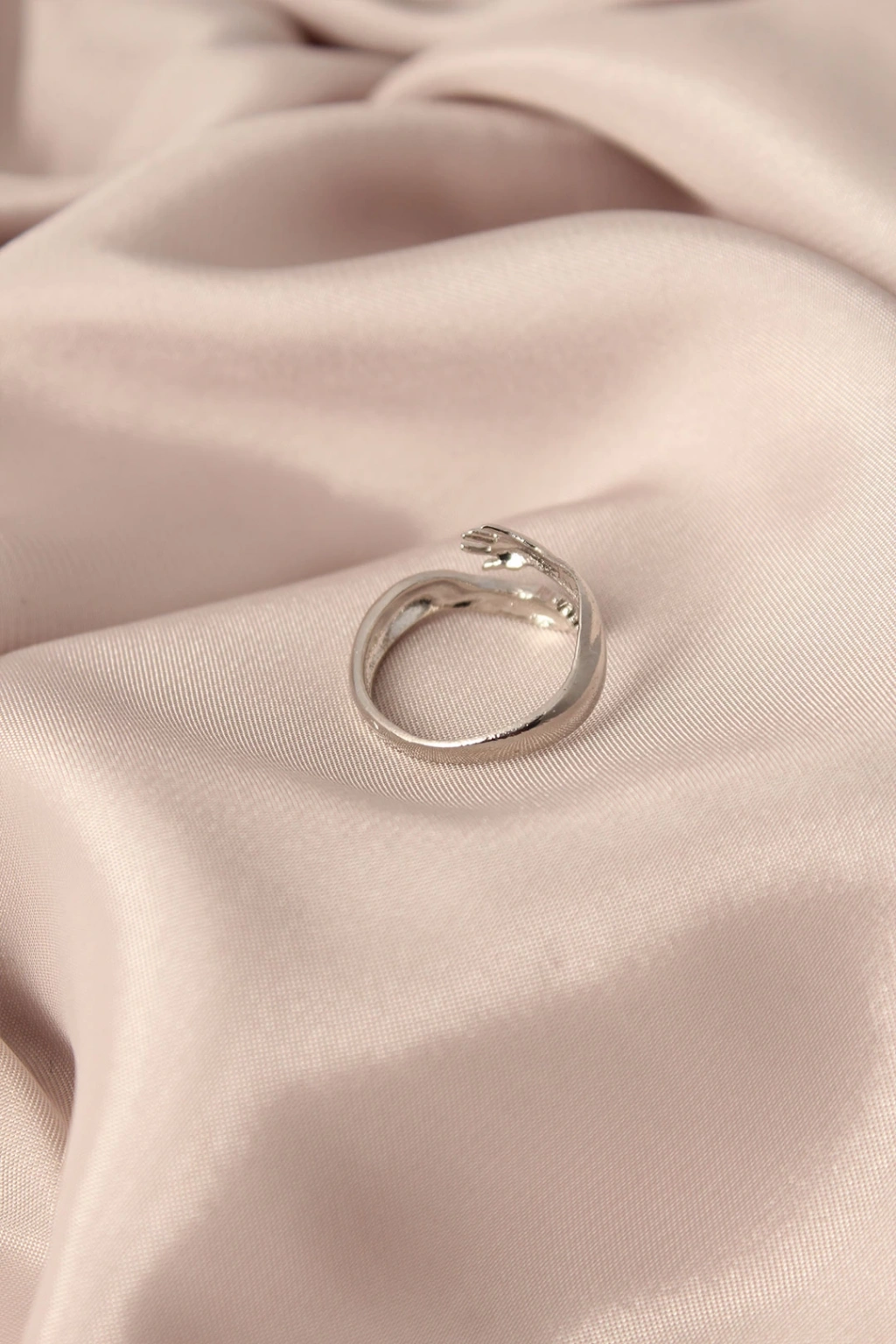 Ayarlamalı Gümüş Renk Metal Sarılan Eller Model Kadın Yüzük