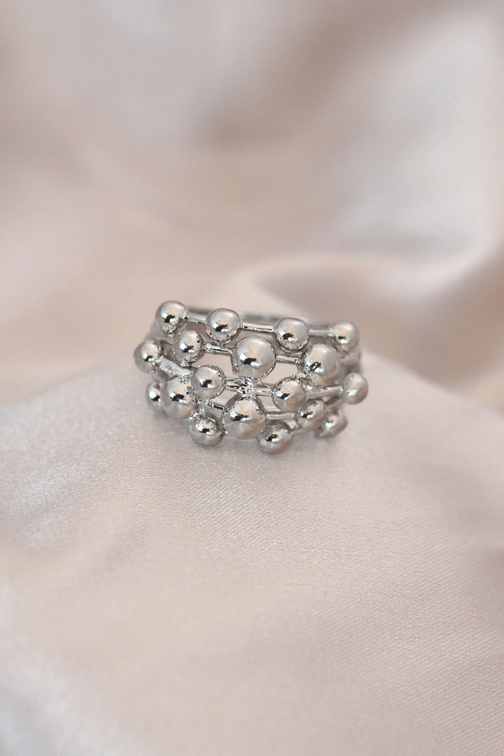 Ayarlamalı Silver Renk Metal Bombeli Boluncuk Model Yüzük