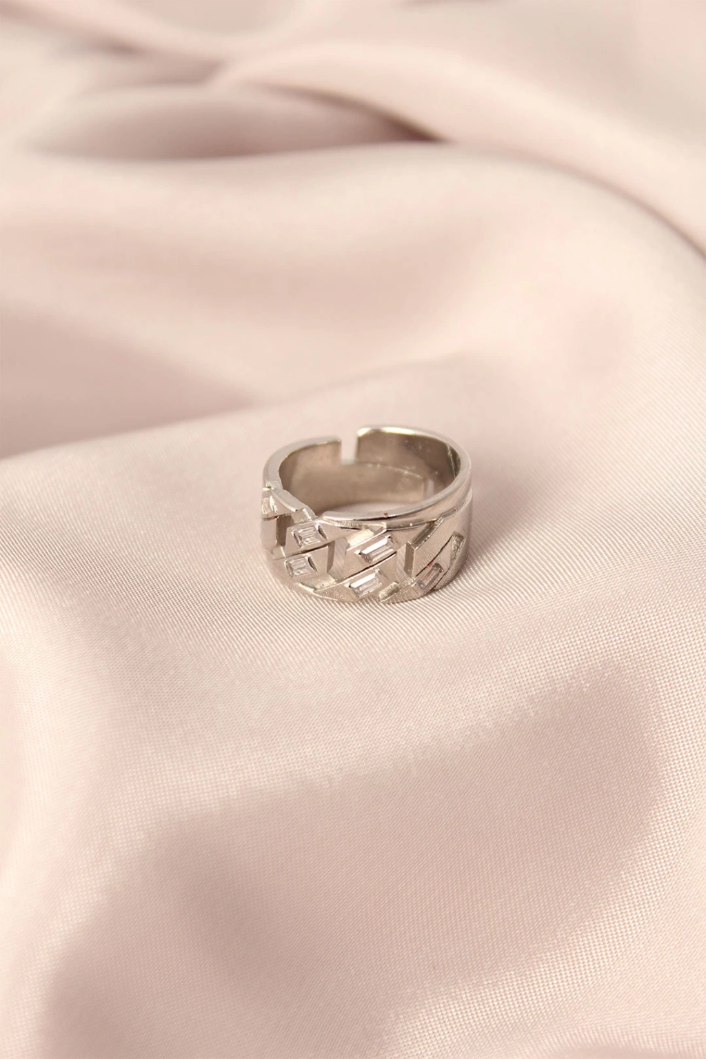 Gümüş Renk Metal Taşlı Model Ayarlanabilir Kadın Yüzük