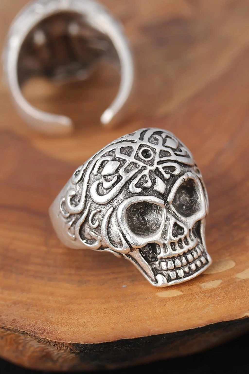 Kuru Kafalı Gümüş Renk Erkek Yüzük