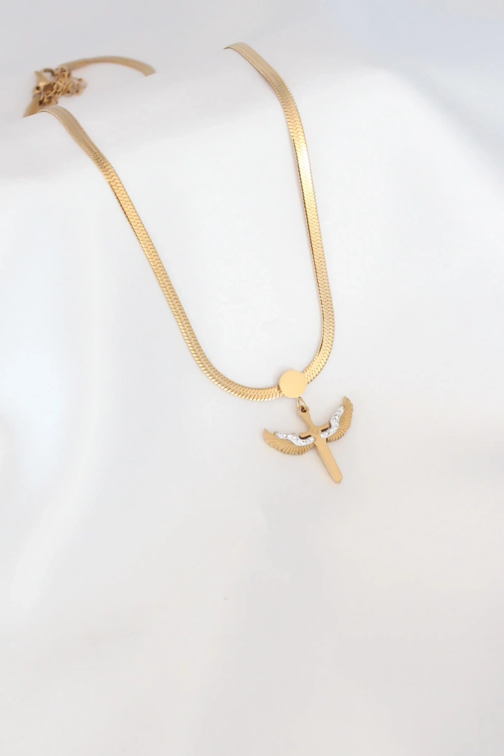 • Mikail Figür Zirkon Taş Detay Gold Renk Çelik İtalyan Zincir Kadın Kolye