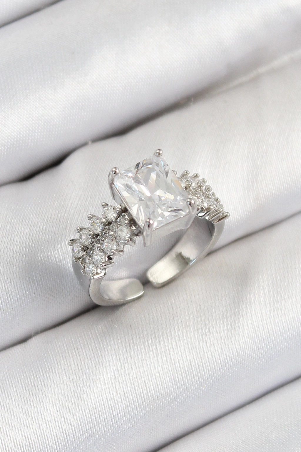 Pirinç Büyük Zirkon Taşlı Model Gümüş Renk Kadın Yüzük