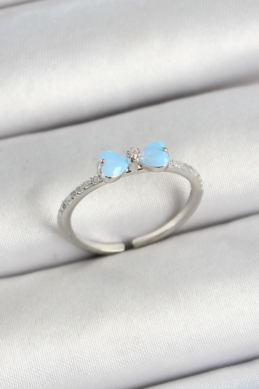 • Pirinç Fiyonk Figürlü Zirkon Taşlı Gümüş Renk Ayarlanabilir Kadın Yüzük