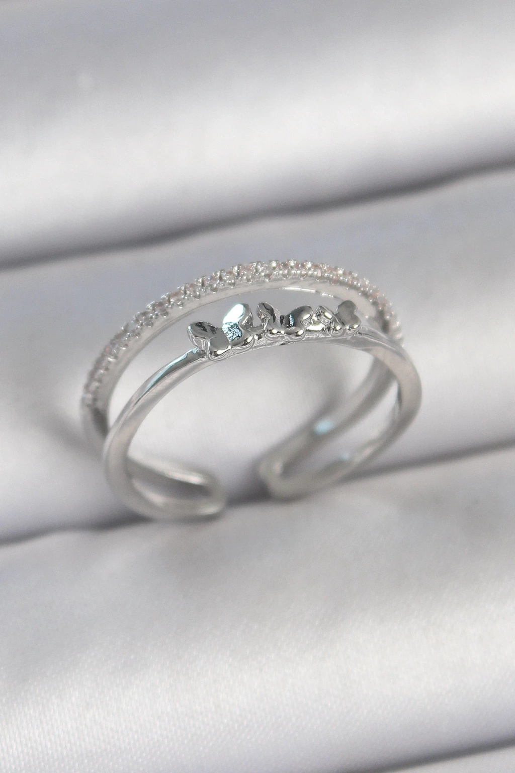 • Pirinç Gümüş Renk 2'Li Zirkon Taş Detaylı Kelebek Figür Ayarlanabilir Model Kadın Yüzük