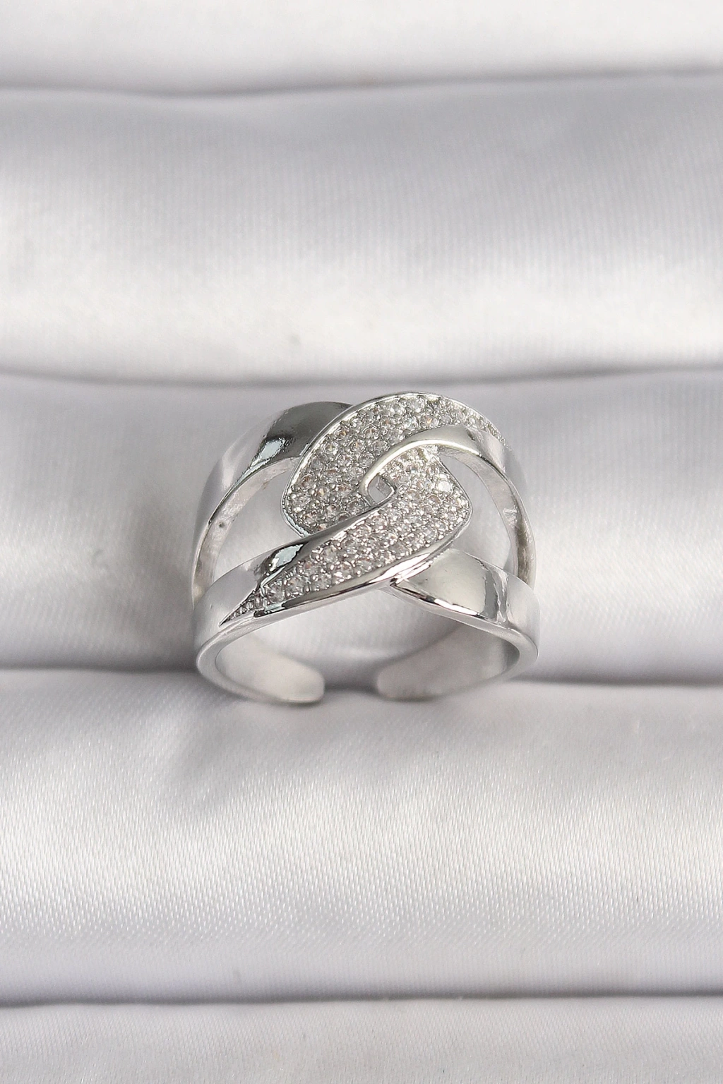 Pirinç Gümüş Renk Ayarlanabilir Zirkon Taşlı Kadın Yüzük
