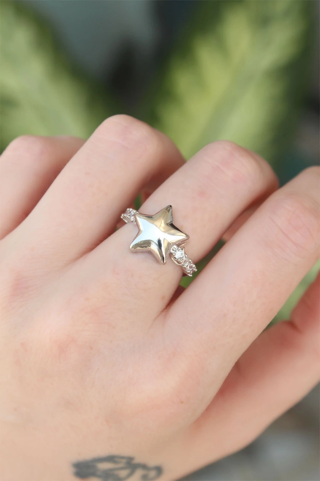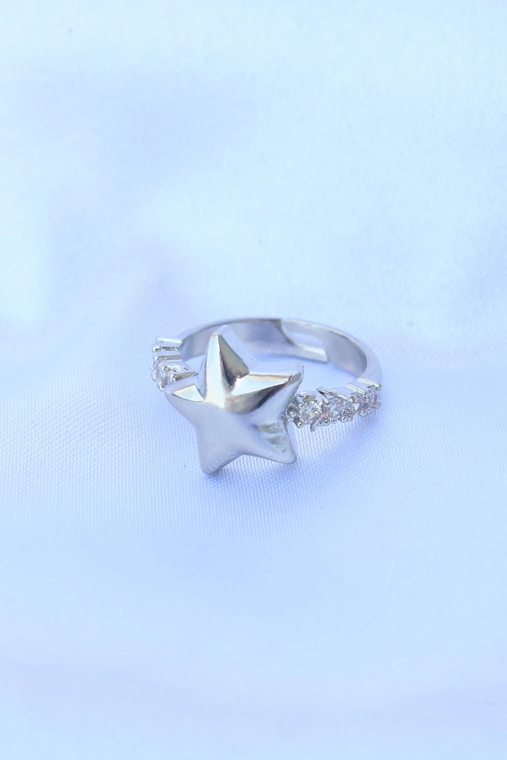 Pirinç Gümüş Renk Ayarlanabilir Zirkon Taşlı Yıldız Yüzük