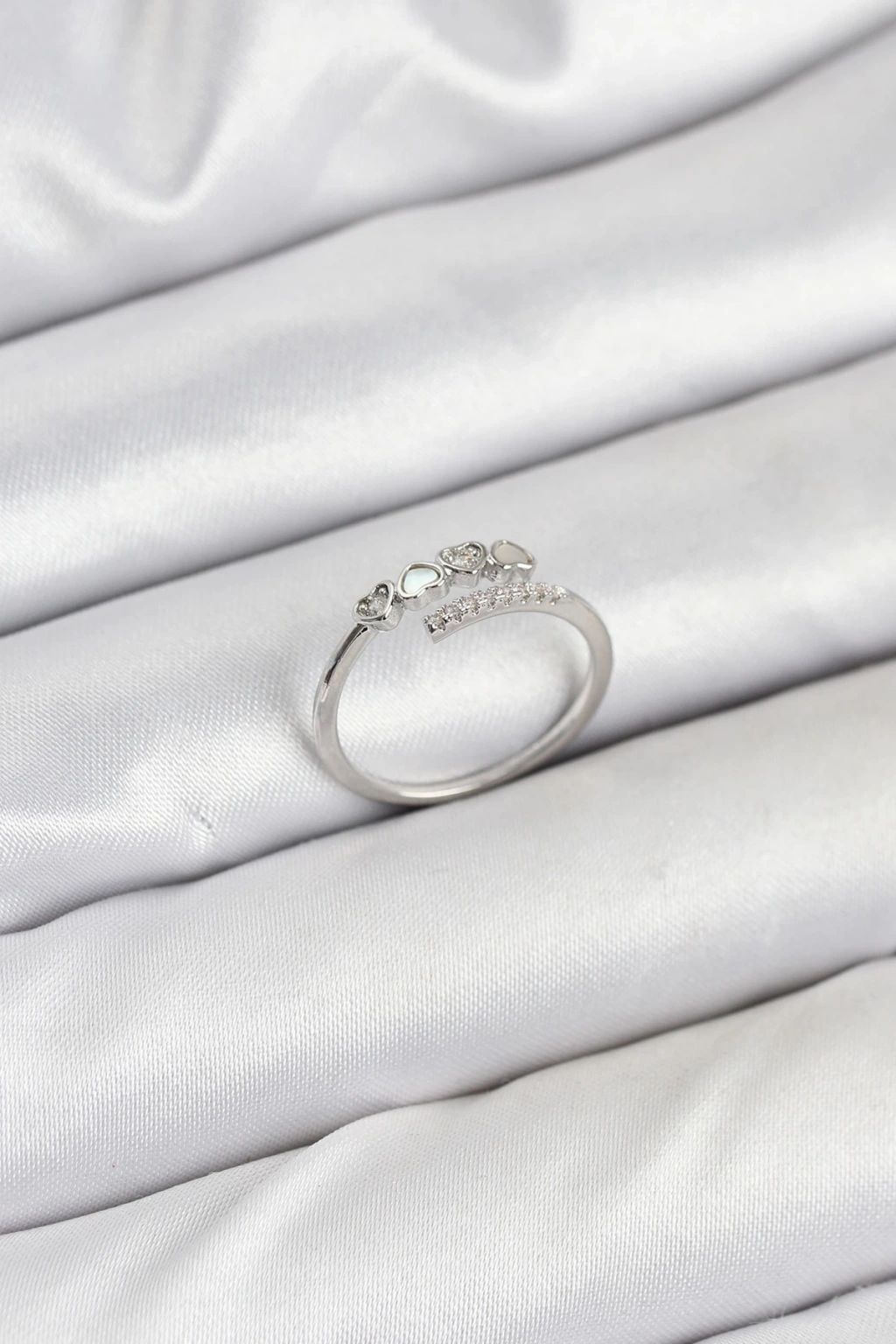 Pirinç Gümüş Renk Kalpli Detaylı Zirkon Taşlı Kadın Yüzük