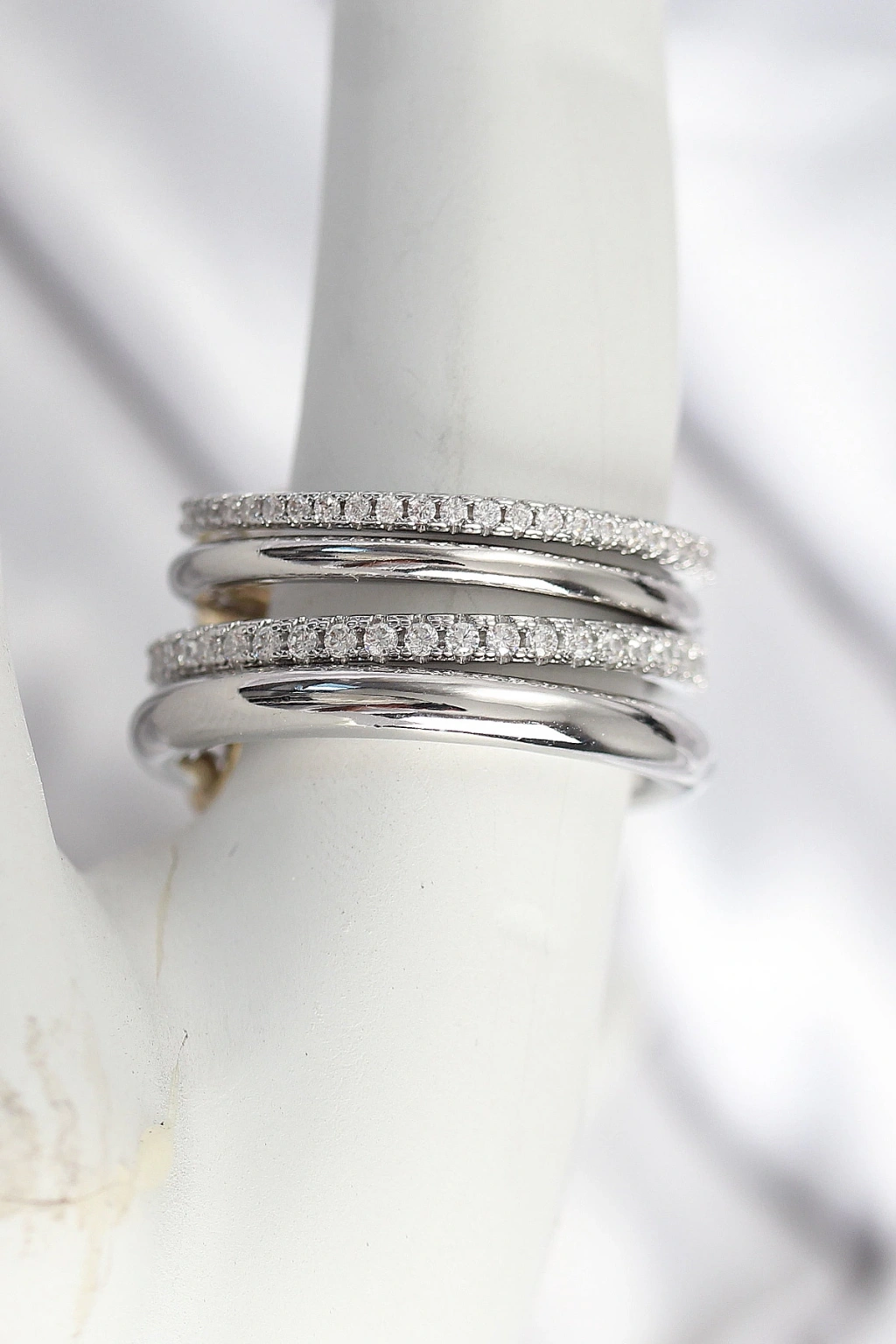 Pirinç Gümüş Renk Zirkon Taşlı 4'Lü Kadın Yüzük