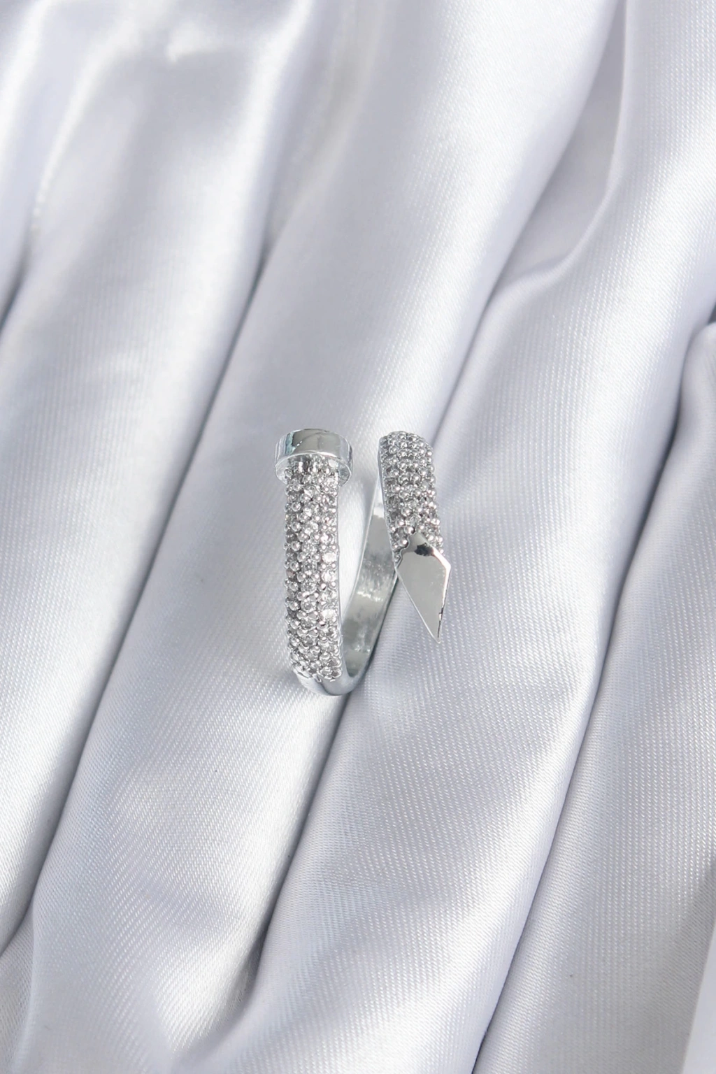 Pirinç Gümüş Renk Zirkon Taşlı Çivi Model Kadın Yüzük