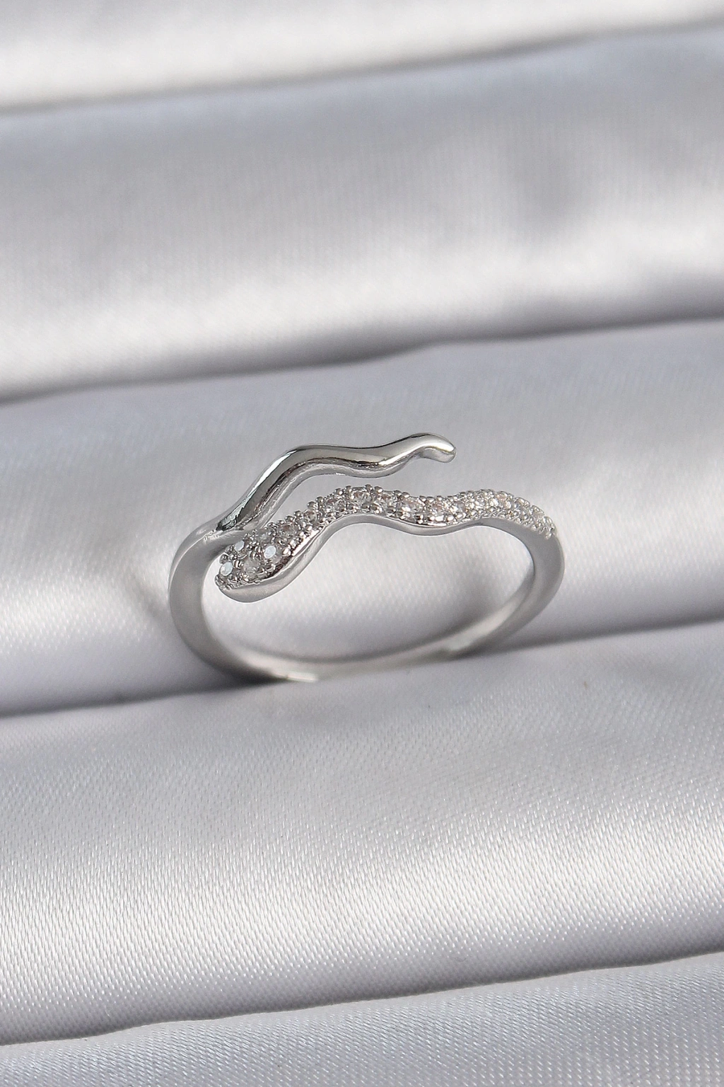 Pirinç Gümüş Renk Zirkon Taşlı Yılan Ayarlanabilir Model Kadın Yüzük