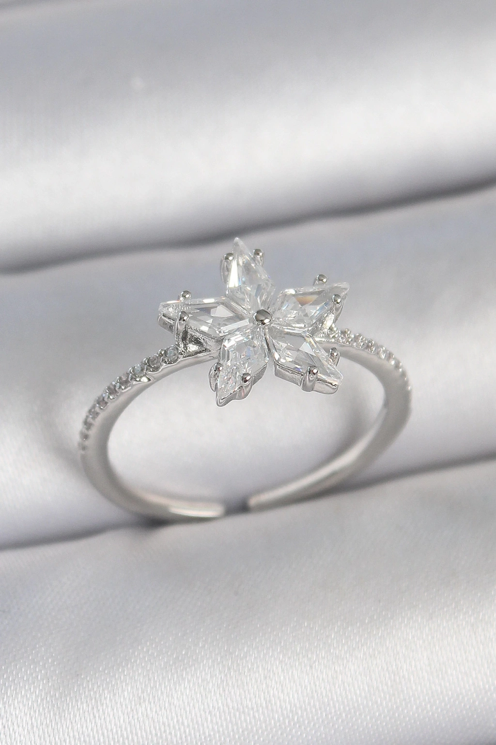 • Pirinç Gümüş Renk Zirkon Taşlı Yıldız Model Ayarlanabilir Kadın Yüzük