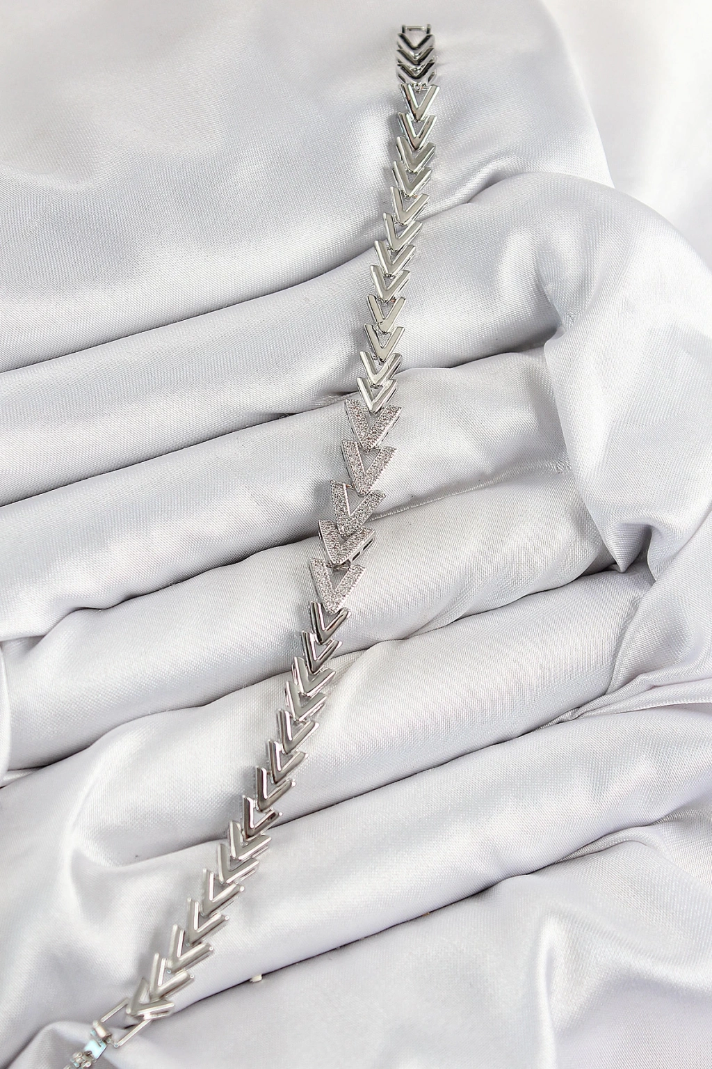Pirinç Zirkon Taşlı Sıralı Ok Model Gümüş Renk Kadın Bileklik