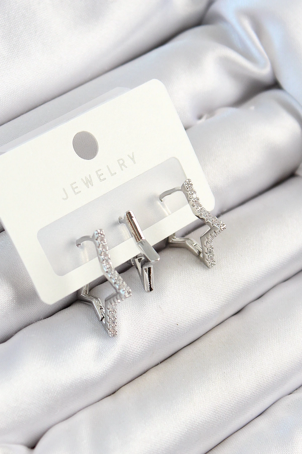 • Pirinç Zirkon Taşlı Yıldız Model Gümüş Renk 3'lü Çift Kadın Küpe Set