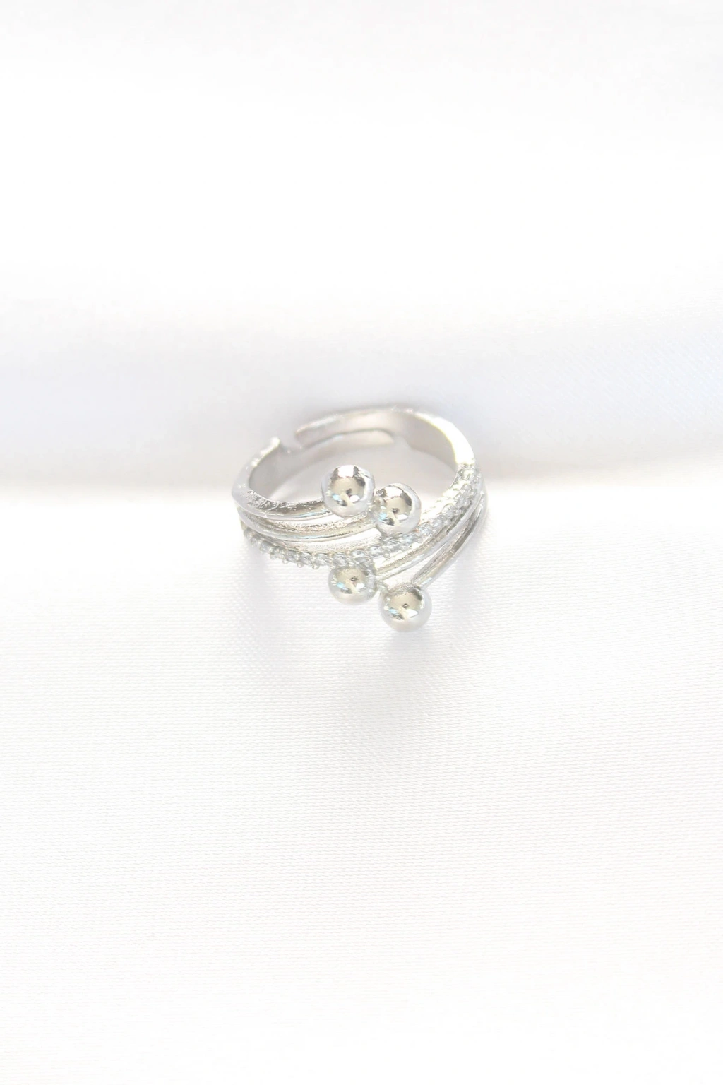 Topçuk Model Zirkon Taşlı Silver Renk Ayarlanabilir Yüzük